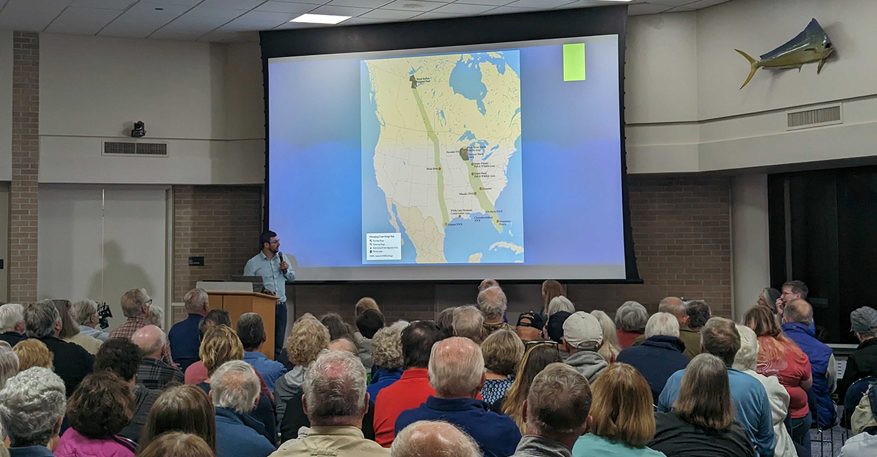 Photo: Gulf Coast Program Director Dr. Carter Crouch presents during the festival. Jennifer Fiene/International Crane Foundation