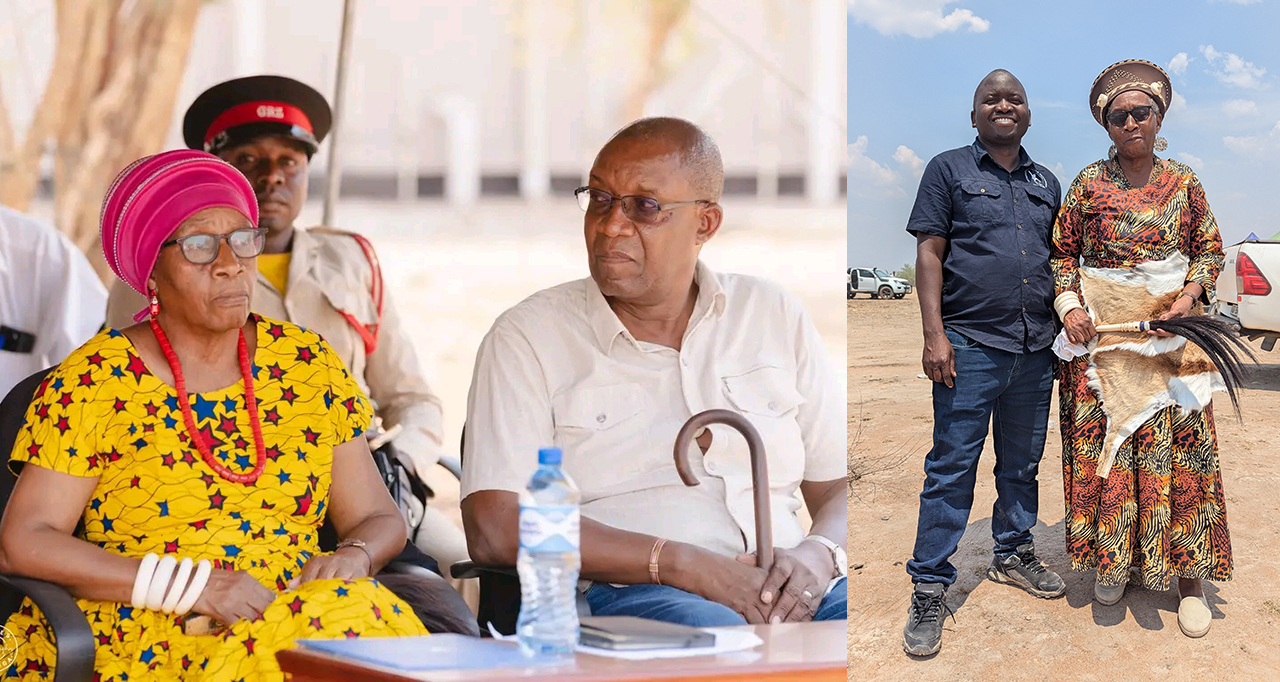 Zambian Traditional Leaders (left) Chieftainess Muwezwa and Senior Chief Shakumbila, and (right) International Crane Foundation Community Relations Manager David Banda with Chieftainess Muwezwa