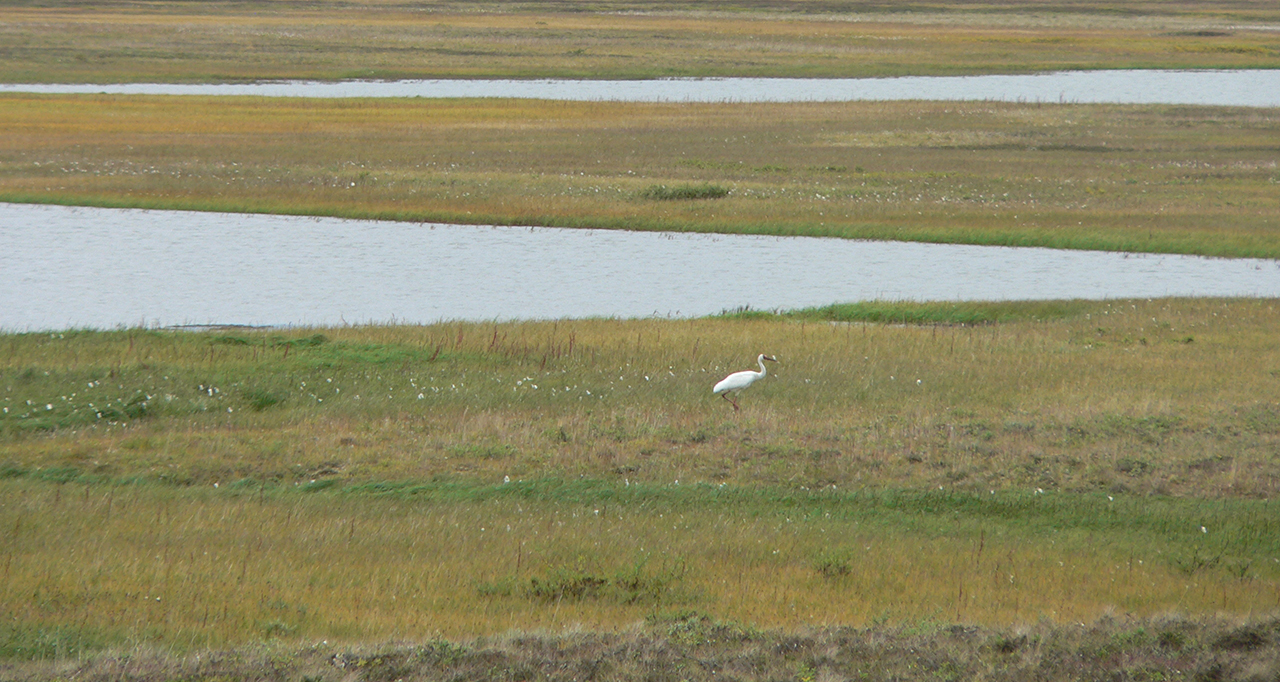 A single Siberian Crane on its breeding grounds in Northeast Siberia. Photo by Crawford Prentice