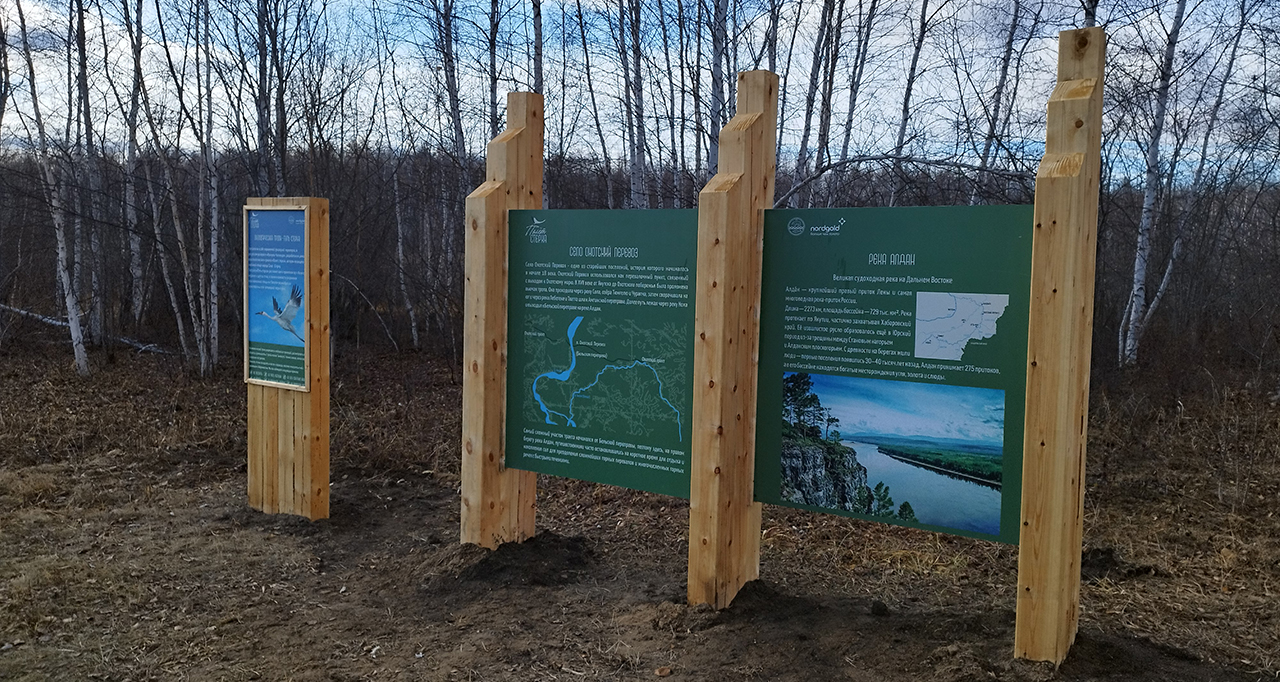 On the left bank of the Aldan River, in the Kuoluma-Chappanda Regional Resource Reserve, an observation deck and nature trail, “The Way of the Siberian Crane,” encourage visitors to learn more about the importance of this region for Siberian Cranes and other migratory birds. Photo courtesy Flight of the Siberian Crane Project.