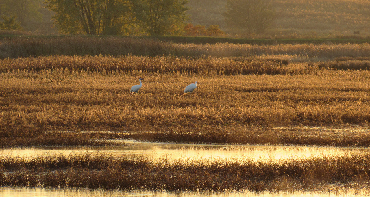 We now know that a buffer distance of 12.56 kilometers around Goose Pond would encompass most of the daily travels of Whooping Cranes that stay at the property over the winter. With the knowledge gained in this study, we can prioritize areas for protection and mitigation of threats, especially from energy development. By building partnerships with communities, energy companies, and conservationists across the flyway, we can reach solutions that benefit both people and the cranes they share the land with.